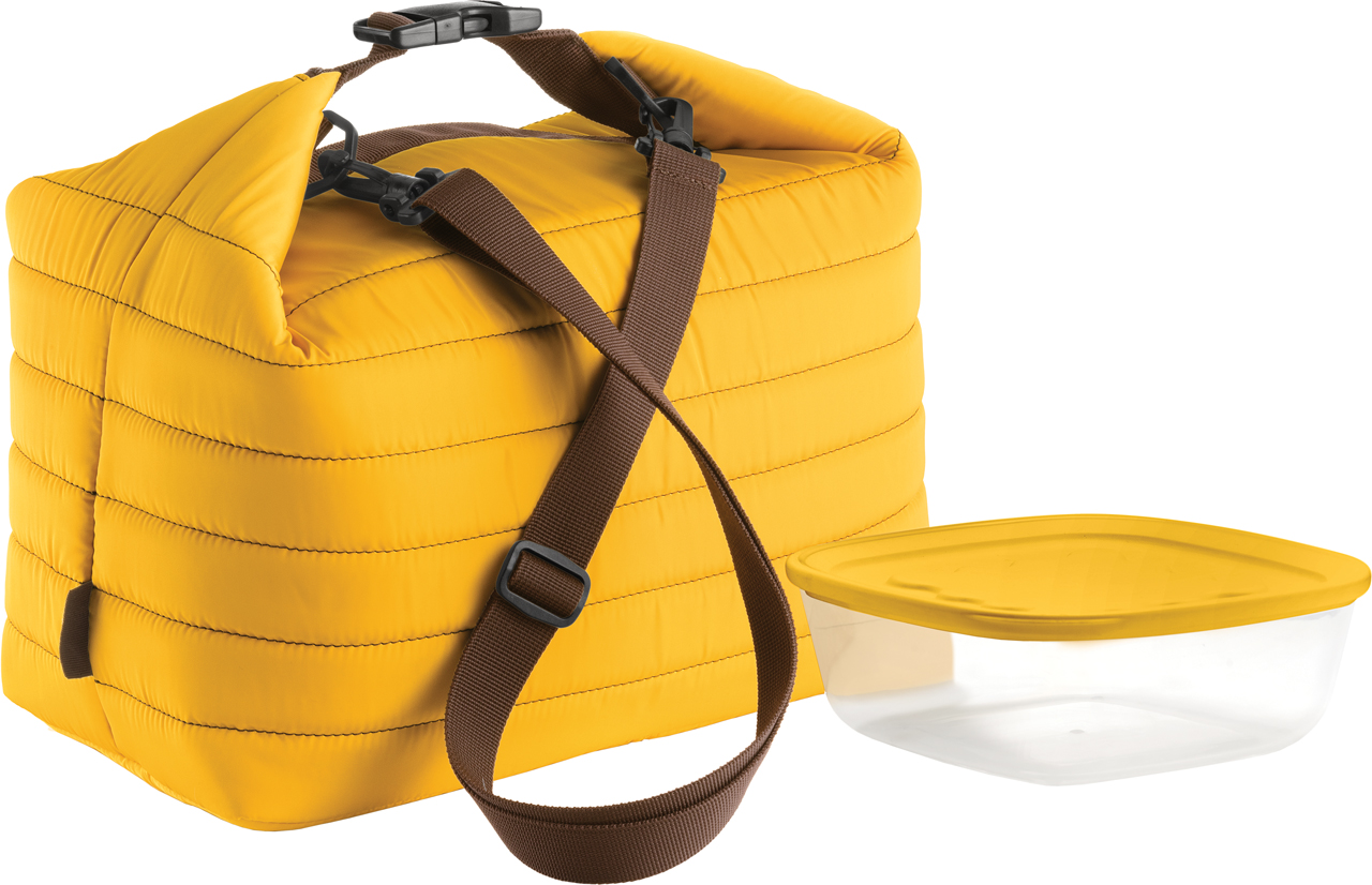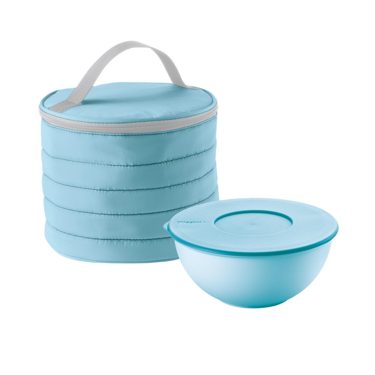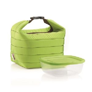 Compreso nella borsa il contenitore salvafreschezza e antigocciolamento, in plastica, lavabile in lavastoviglie e utilizzabile nel forno a microonde, freezer e frigorifero.
